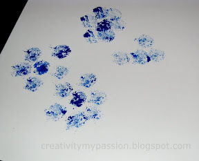This idea was taken from Almost Unschoolers post: pom pom painting. We made a flower garden and bunch of grapes.