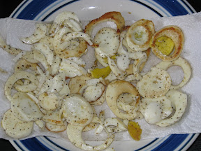Heat the teaspoon oil in a pan. Sprinkle pepper and salt.